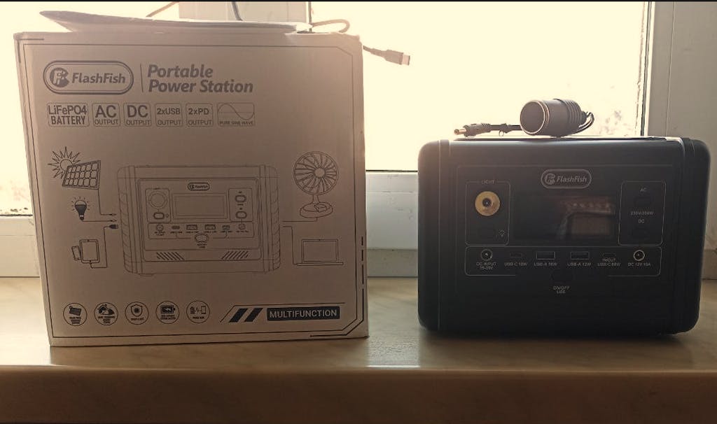 Multiple ports and ultra-compact design of the FlashFish E200 Portable Power Station.