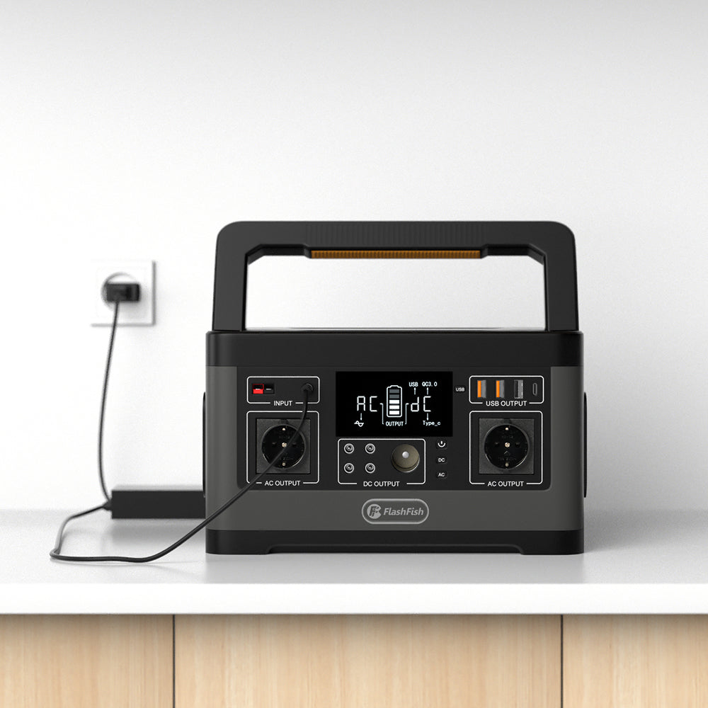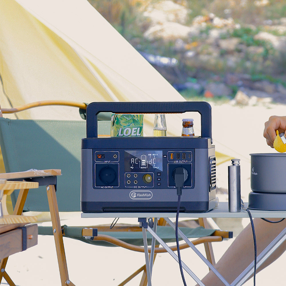 FlashFish P63 560W portable power station charges low to high-power appliances for long hours. With a high battery capacity of 520Wh, a foldable handle, an ergonomic design, industry-leading BMS technology and extremely easy to carry characteristic(Only 5.8kg), the P60 power station is ideal for outdoor adventurers, camping and emergency home backup solutions.