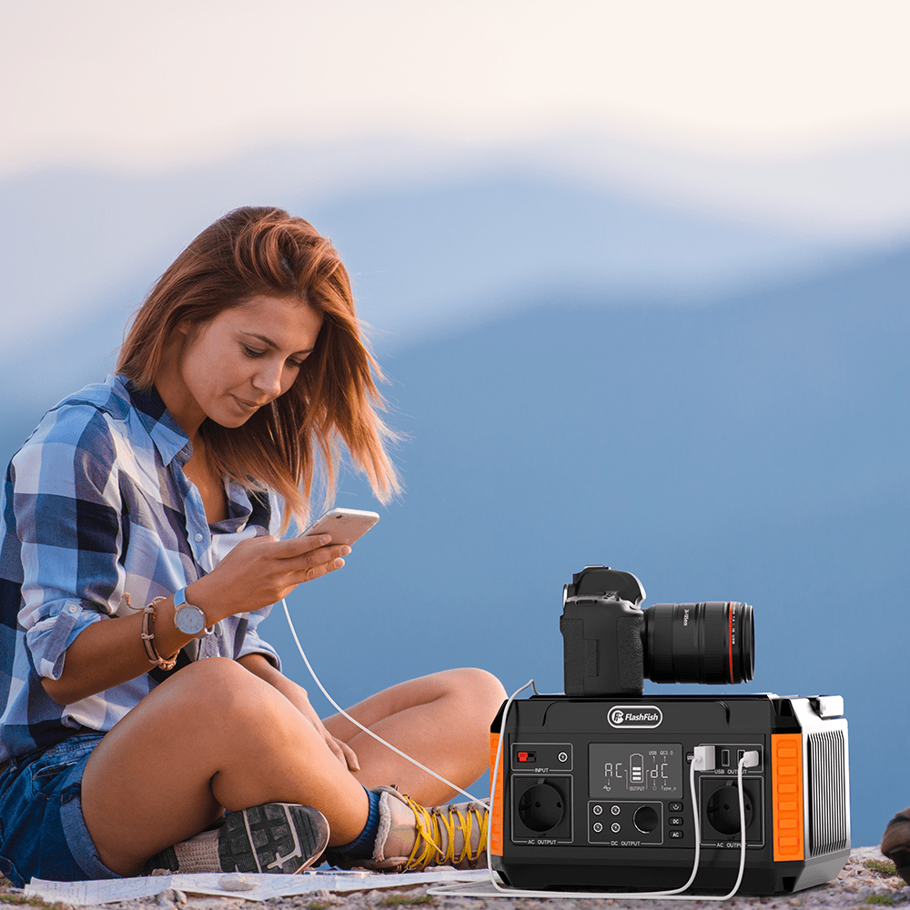 Recharge from the sun by connecting a compatible solar panel, In the P60 solar generator kit, FlashFish TSP100W foldable solar panels which can be perfectly adapted to this task, allowing you to enjoy off-grid life.
