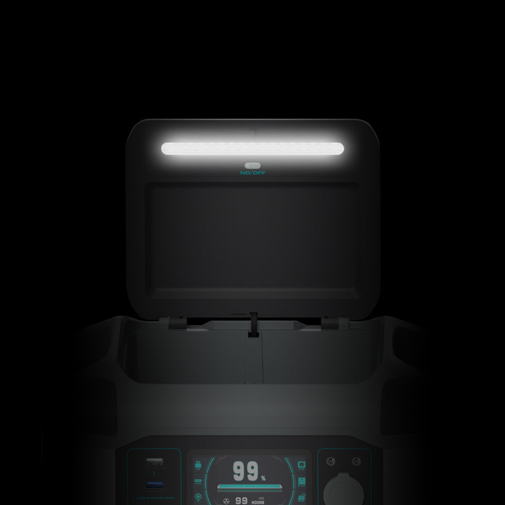 The lid of the P25 MAX top storage box features a cleverly integrated LED light, offering unparalleled convenience and visibility.