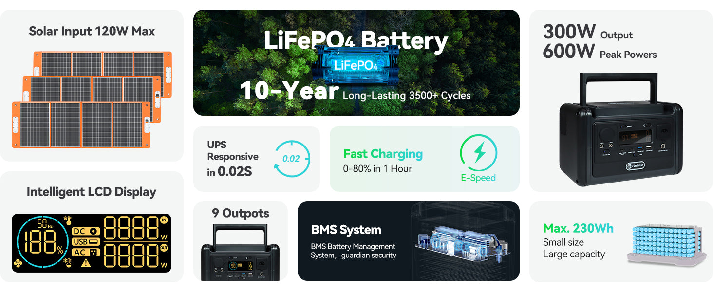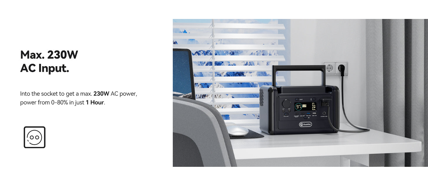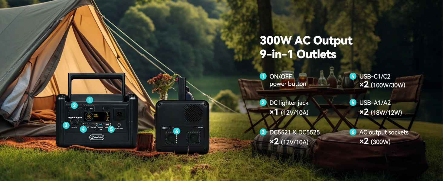 【LFP】Flashfish T300PRO Portable Power Station | 300W 230Wh/72000mAh | Pure sine wave | Lithium iron phosphate battery