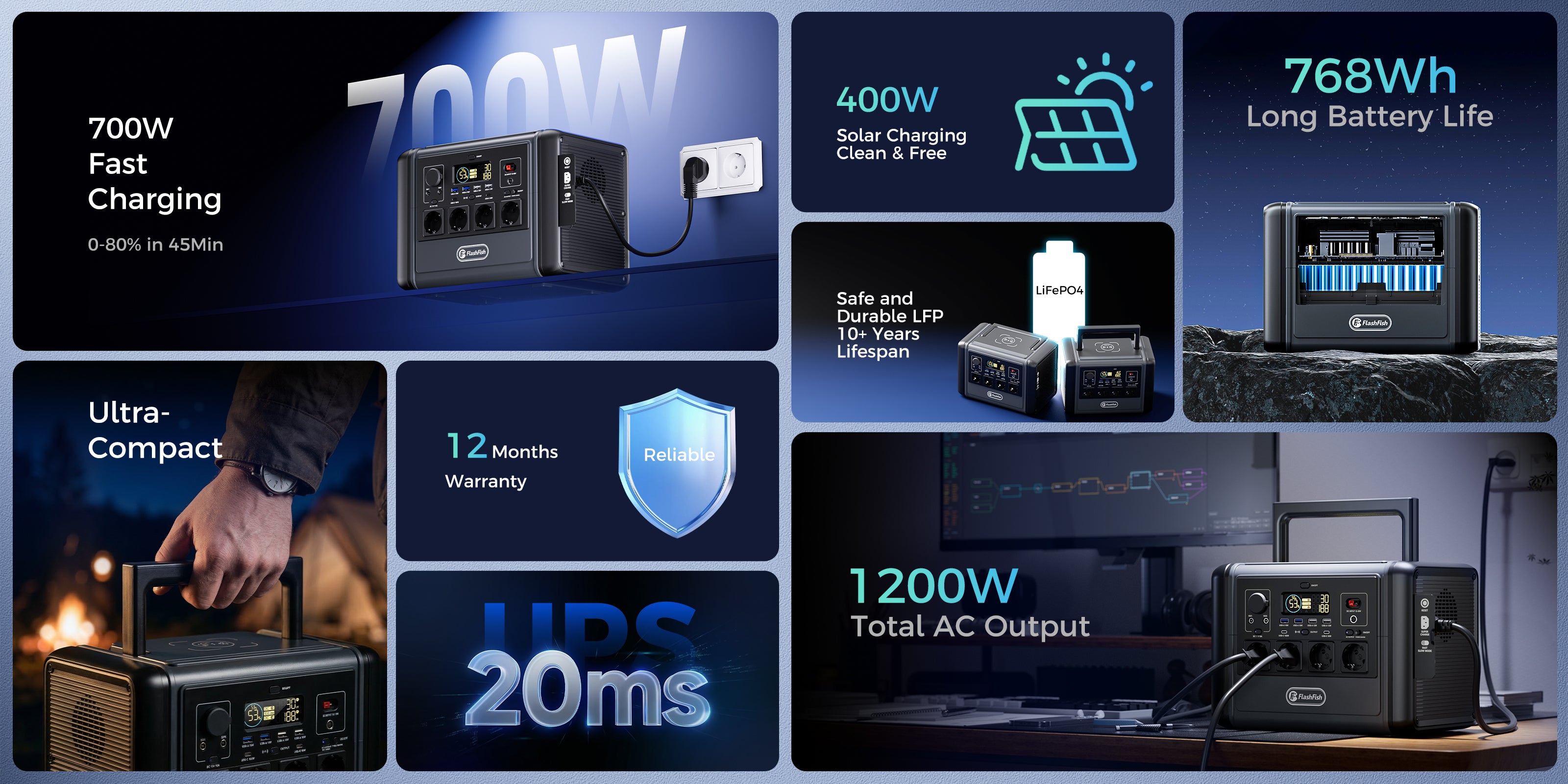 Flashfish T1200S Portable Power Station |【LFP】1200W+768Wh